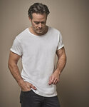 Fashion loose fit. Shoulder-to-shoulder neck tape. Double pre-shrunk. Long-fibre cotton. Enzyme-washed. Silicone treatment. Large neck opening with slim neck rib.