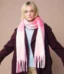 100% recycled polyester. Luxury soft touch fabric. Oversized styling. Checkered design. Chunky, wrap around design. Tassel trim. Removable adhesive fabric label.